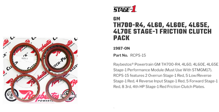 QTY 1 PART NO. ADP-RCPS-15 DESCRIPTION TH700-R4 4L60 4L60E 4L65E 4L70E STAGE-1 PERFORMANCE FRICTION CLUTCH PACK